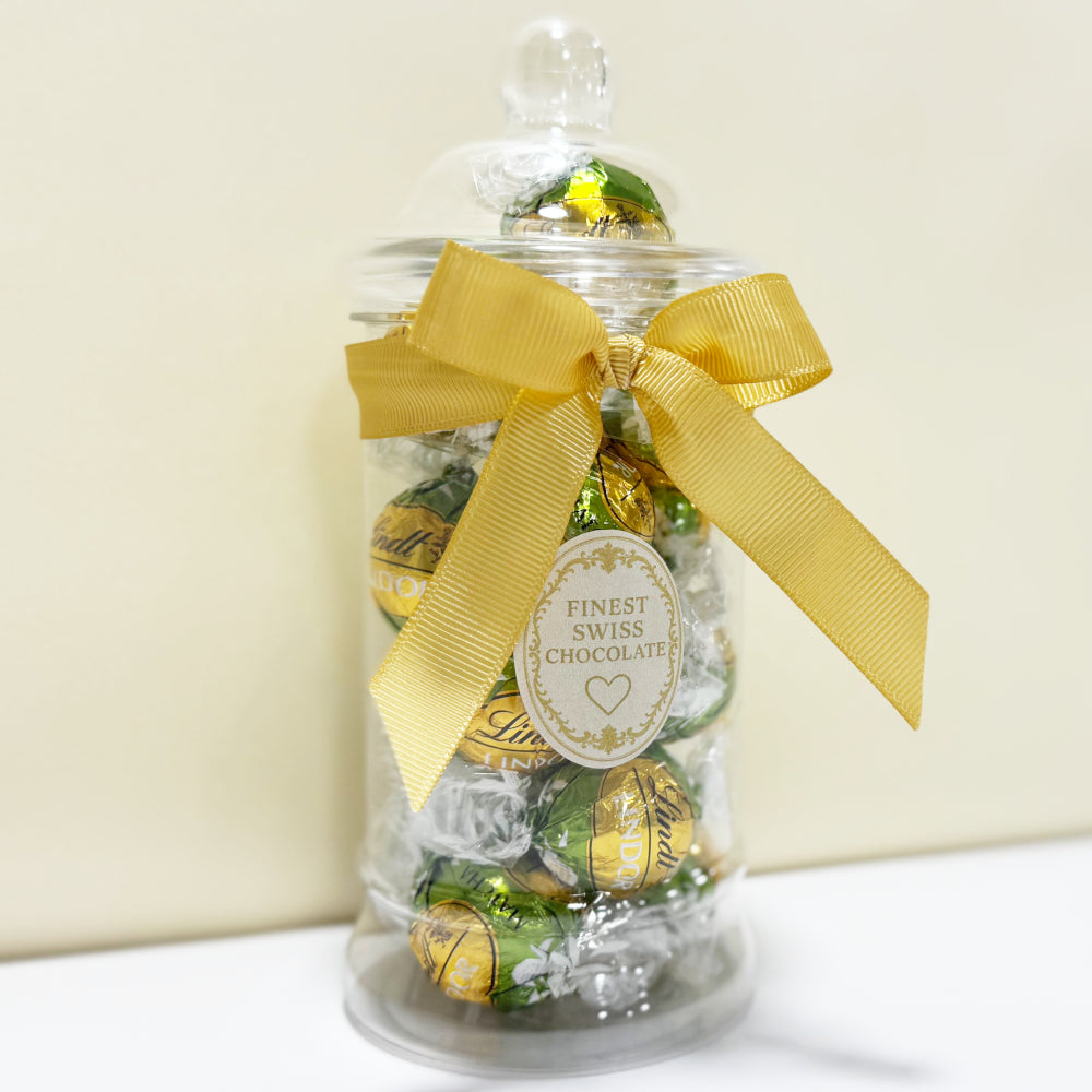 Delight in this charming Victorian-style jar filled with 15 Lindt Lindor Matcha White Chocolate Truffles, imported from the USA. Adorned with a festive ribbon, it's perfect for gifting during Christmas or any special occasion. Smooth white chocolate Lindt Lindor mixed with the subtle flavours of matcha tea. These individually wrapped delights are the perfect size to enjoy anytime, anywhere. Beautifully presented in a keepsake jar that adds elegance and sweetness to any celebration. A treat worth savoring!