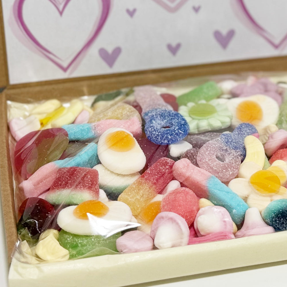 Surprise someone special with our delightful gift box filled with assorted sweets and candies. Each box features a beautifully designed label adorned with hearts, with the option to add your own heartfelt message. Available in two convenient sizes, the sweets are hygienically sealed in plastic bags to ensure long-lasting freshness. Perfect for birthdays, celebrations, or just because—this sweet box is a thoughtful and delicious way to show you care.